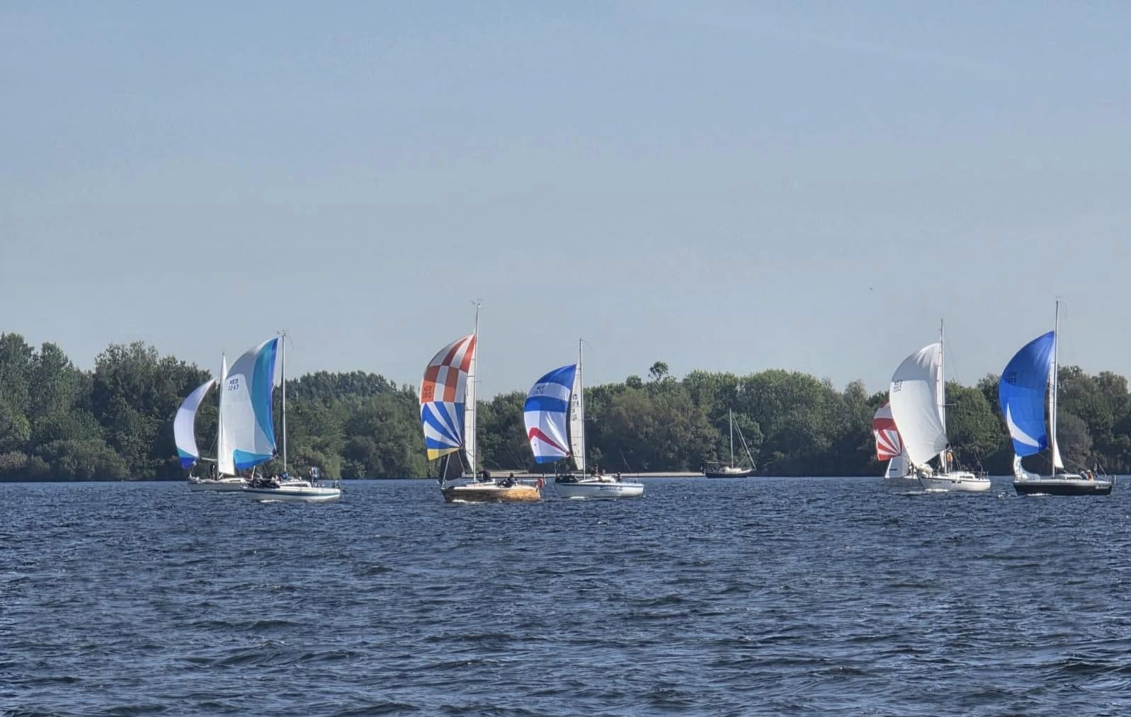 Afgelopen weekend zeilden Hylke, Joost en Jonas het Almere Haven Race Weekend 2025 op het Gooimeer. Zaterdag vroeg naar de haven om de boot klaar te maken en op het meer met de genua nog wat tackjes en gijpjes met spi te oefenen. We waren keurig op tijd bij het startschip, alleen was de wind light en behoorlijk shiftend. Uiteindelijk wist het comité er twee potjes uit te persen. Na de laatste finish een finish-biertje: Alles voor de sport! Joost en Jonas reden naar Utrecht en Hylke at met een paar zeilers een hapje in Naarden vesting en sliep in een Trekkershut op de haven. We voeren vandaag trouwens een 3 en een 7 en stonden na de eerste dag we op een vierde plaats overall in een veld van 14 boten waarvan zeven ¼ tonners. Helemaal niet slecht!